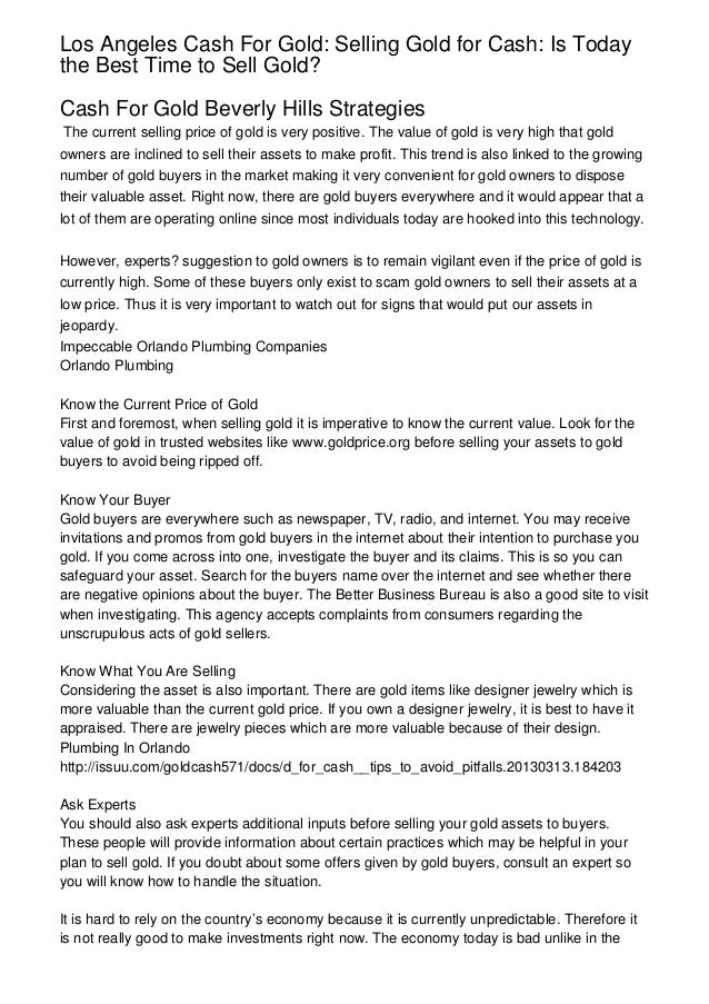 The only month gold has been down in every market condition is march. Cash for gold usa is a good option when it comes to sites offering to buy your gold, silver, or platinum. As such, now is a great time to sell gold coins if you have a collection that you'd like to convert into cash. This time gold is trading on higher levels (recently gold. By organizing your gold before your visit, you will save the gold dealer time. That is to say, gold and silver have not reached the pinnacle of bubble territory, when it would be a good time for anyone to sell. There is no good time to buy gold, said cheng, who said he sees the asset hitting $2,000 per ounce by the end of the year. However, if the economy is in a period of high inflation, it may be wise to pass. The gold price is universal, as most gold markets use live gold prices listed in u.s. Investing precious metals this is not the time to sell, unless it is time for you. We are in stratospheric territory.. The problem is that refiners usually only buy in bulk. Time to sell your jewelry?